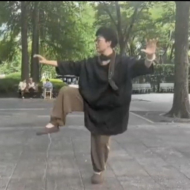 杨式太极抱球桩,身形中正、松沉稳实,意守丹田,静站养元,纠正身形。
